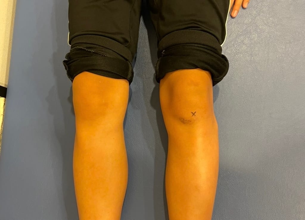 シンディング-ラルセン-ヨハンソン病は、成長期のスポーツをしている子ども(主に10〜15歳)に多く発症し、膝蓋骨(膝のお皿)の下端に起こる骨端症です。
