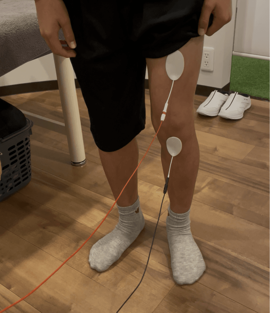 痛みが強い時期は運動量の調整が必要となります。膝が腫れていたり熱感がある場合はアイシングを行います。組織の修復を素早く行い早期復帰を目指すために低出力超音波(LIPUS)や微弱電流治療機器(エレサス)を行います。
