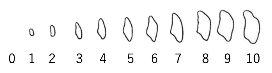 膝蓋骨は中心部から発生していき、次の図のような過程で成長していきます。
