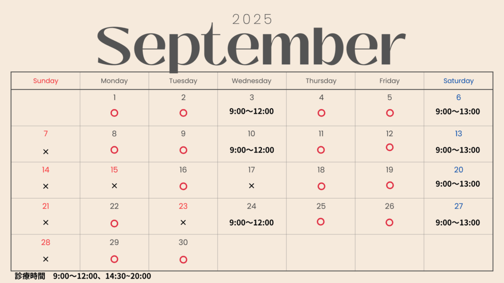 休診日でも急を要する場合は、070-8494-0612(院長直通)まで一報お願い致します。