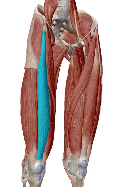 骨盤の骨である下前腸骨棘には太ももの筋肉である『大腿直筋』という筋肉が付着しています(下の画像の青い筋肉)。