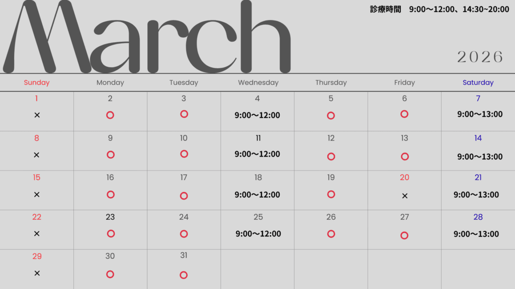 3月は通常通りの診療となります。